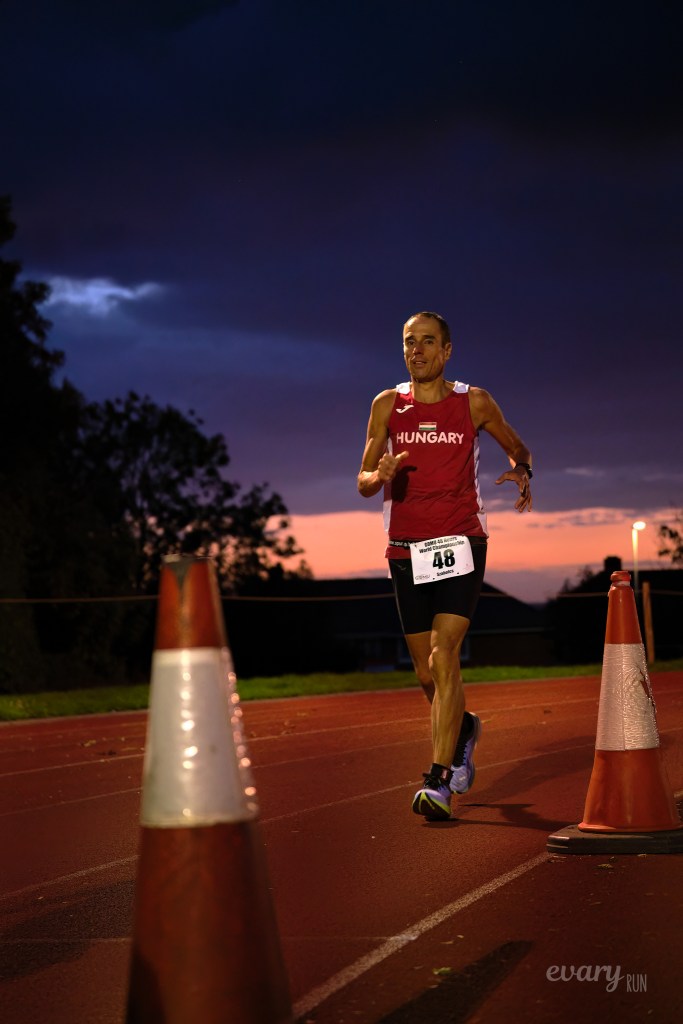 Ezek a megfigyelések és tapasztalatok voltak segítségemre az elmúlt évek hosszabb versenyein, hogy olyan képeket készíthessek a versenyzőkről, amelyeket ők is szívesen elkérnek, megőriznek, megosztanak és szeretnek. Ennek a bejegyzésnek a közzététele előtt mindössze három héttel vettem részt Angliában a GOMU 48 órás világbajnokságon, a magyar csapat kísérőjeként. Előrelátó módon még a rajt előtt megbeszéltem a futókkal, hogy terveim szerint az első órában fogom fotózni őket, illetve ha lesznek szép színek, akkor az első napnyugta és/vagy az első napkelte alatt szeretnék majd még próbálkozni. Így ők is tudták, hogy mire számítsanak, és mindenki a legjobbját tudta nyújtani, fényképezőgépen innen és túl. A péntektől vasárnapig tartó megmérettetésen – főleg egy „körözős” versenyen – semmi értelmét nem láttam a második naptól fogva bármilyen módon fényképezőgéppel stresszelni őket, mert már tudom, hogy igazán értékelhető és felhasználható képek úgyis inkább a futamok elején készülhetnek. Később a körülmények és a versenyzők állapota már egyre kevésbé segíti vállalható fotók megszületését, a hangulatos alkonyati és pirkadati időszakot leszámítva. De egy 48 órás vagy még hosszabb versenyen már ez utóbbiakat sem erőltetem a második éjszaka közeledtével.